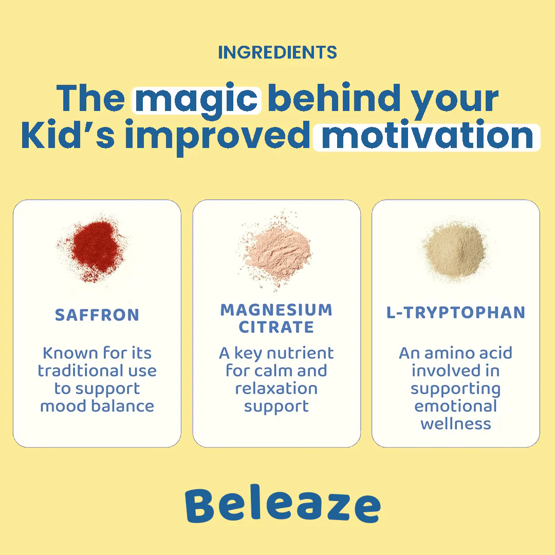 Most parents notice improvement in mood, focus, and calmness within 1–2 weeks of consistent use. Clinical studies show saffron and GABA can naturally support balanced emotions and concentration.