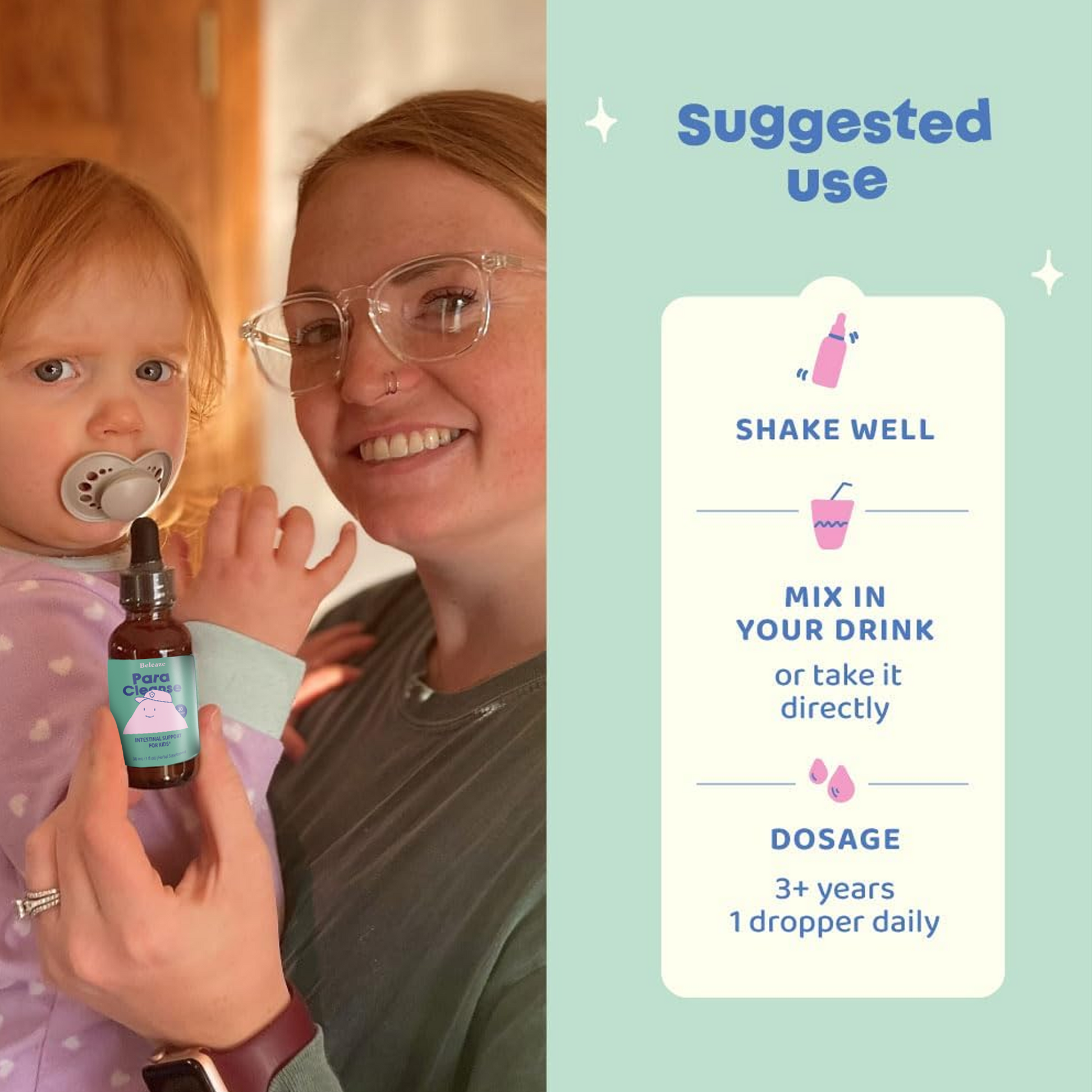Say goodbye to tummy aches, irregular bowels, and discomfort. With consistent use, Para Cleanse™ helps your little one feel lighter, more energetic, and more at ease—naturally.